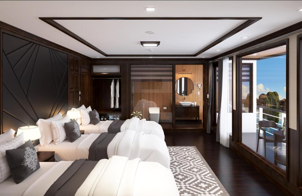 15h30 : Visite des grottes Sáng et Tối – site emblématique de la baie de Lan Ha, à découvrir en kayak ou en barque traditionnelle. Possibilité de baignade dans les eaux turquoise autour du bateau.